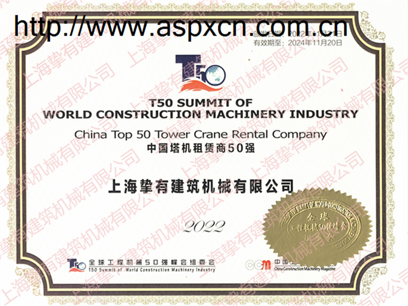 熱烈慶祝摯有在”2022年全球工程機(jī)械50強(qiáng)“活動(dòng)中榮獲“中國(guó)塔機(jī)租賃50強(qiáng)”。